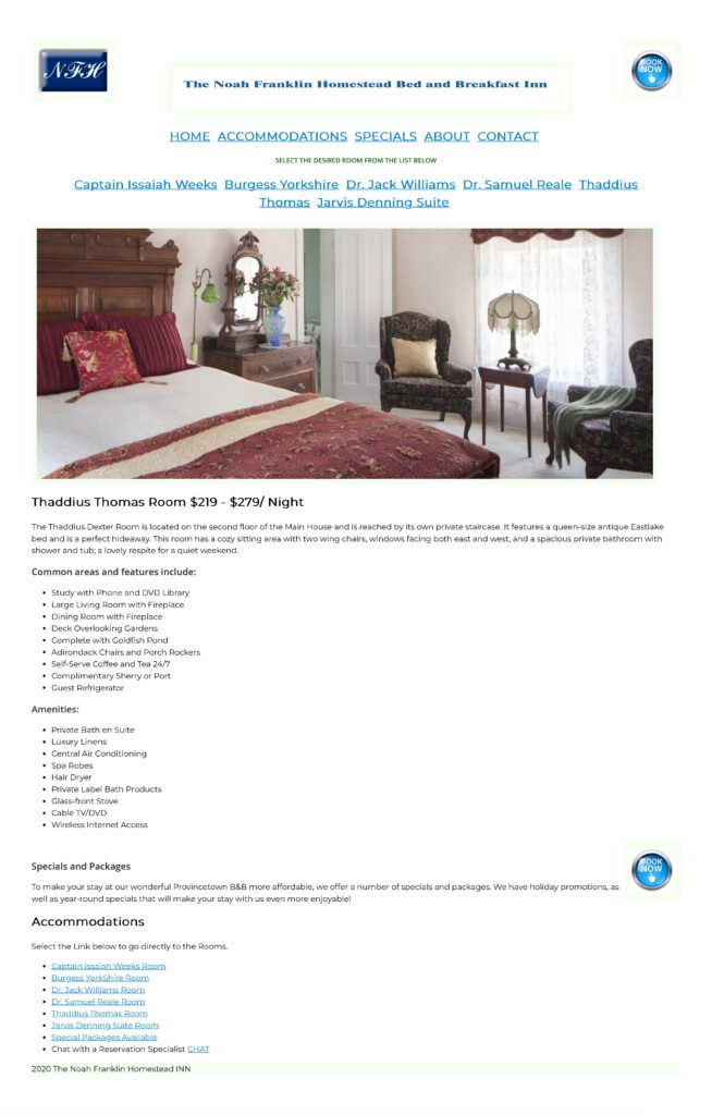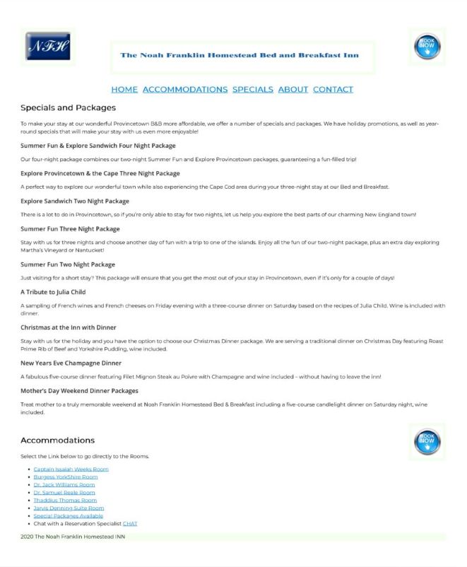WEBSITE: The Noah Franklin Homestean Bed and Breakfast Inn